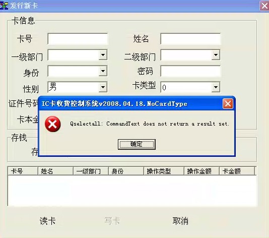 問(wèn):485水控機(jī)在發(fā)行新卡的時(shí)候提示錯(cuò)誤 “Qselectall:CommandText does not return a result set.”