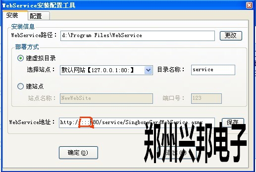 2. 如紅色標注處,正常的應該顯示本機電腦的IP地址,但是此時無法獲取IP地址,80端口被占用,在此處手動輸入本機IP地址,點擊保存,復制WebService地址,配置完成后退出。