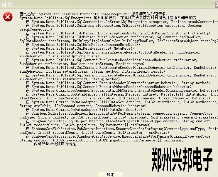 一卡通綜合管理平臺(tái)在查詢消費(fèi)記錄表時(shí)出現(xiàn)如下的錯(cuò)誤提示: