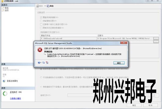 我們軟件的信息都存在數(shù)據(jù)庫中,當(dāng)我們重裝系統(tǒng)或者更換電腦時,我們只要把數(shù)據(jù)庫備份,還原一下就可以。但還原有時候會報如下錯誤:
