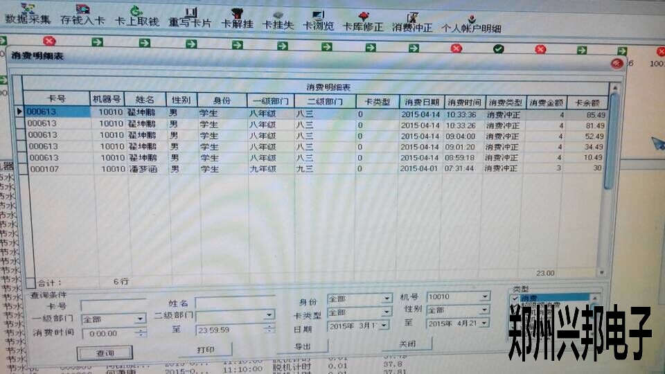 本文關(guān)鍵詞:食堂IC售飯機(jī),消費明細(xì)表,消費沖正