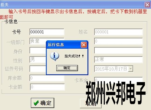 4、掛失成功后要連通消費(fèi)機(jī),下載一下掛失單,這樣拿在機(jī)器上刷就會顯示4—ERR掛失卡。